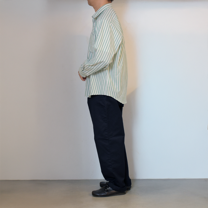 また、ベルト自体の幅も細めのため、ベルトループの狭いARMY CHINOやVINTAGEのトラウザーズにも最適。デニム、チノ、綺麗めなトラウザーズにも合わせられて汎用性もあります。