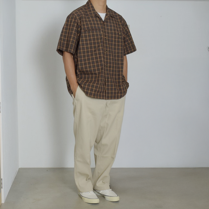 シルエットは腰回りや腿、膝周辺まで程よくゆとりがあり、緩やかなテーパードを入れることにより太すぎない印象を持たせております。