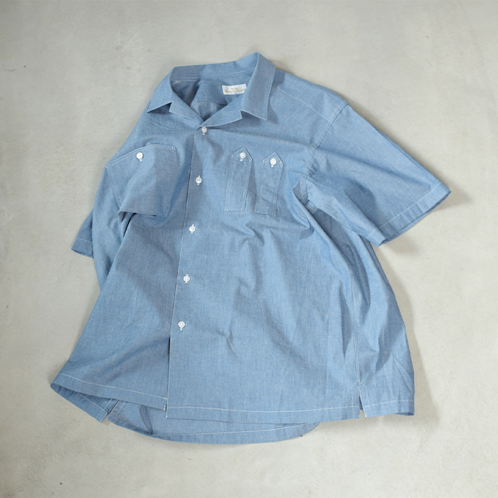 リジット状態での販売なのでパリッとしておりますが、洗い込むとシャンブレー特有のドライな質感に変わっていきます。