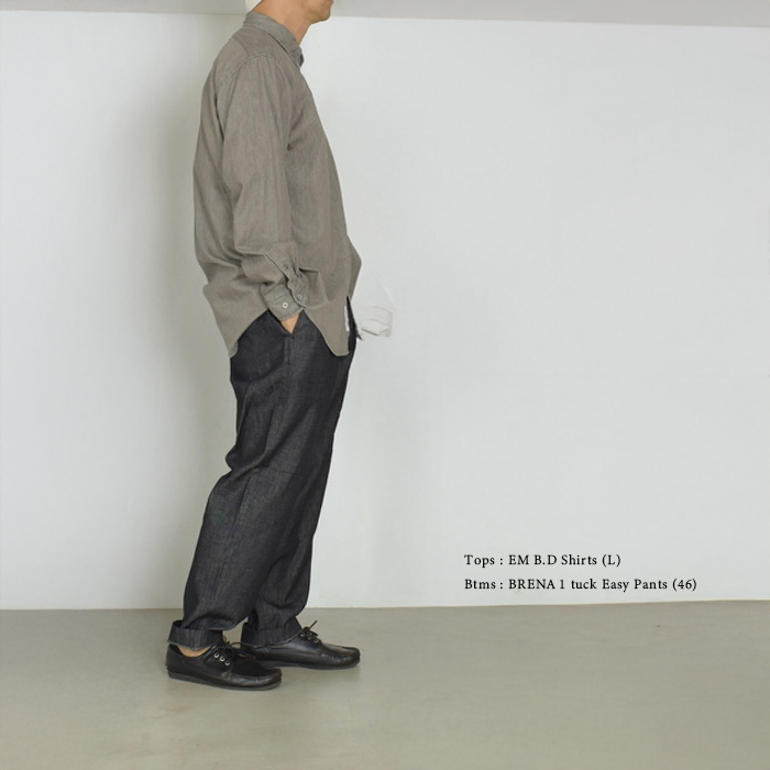 【 BRENA 】 1Tuck Easy Pants - Black Denim -