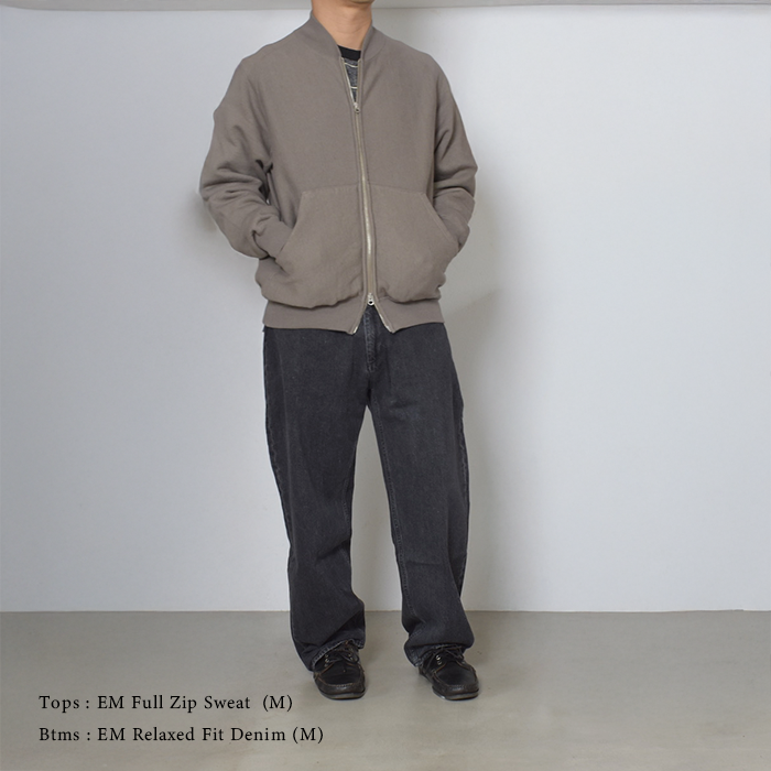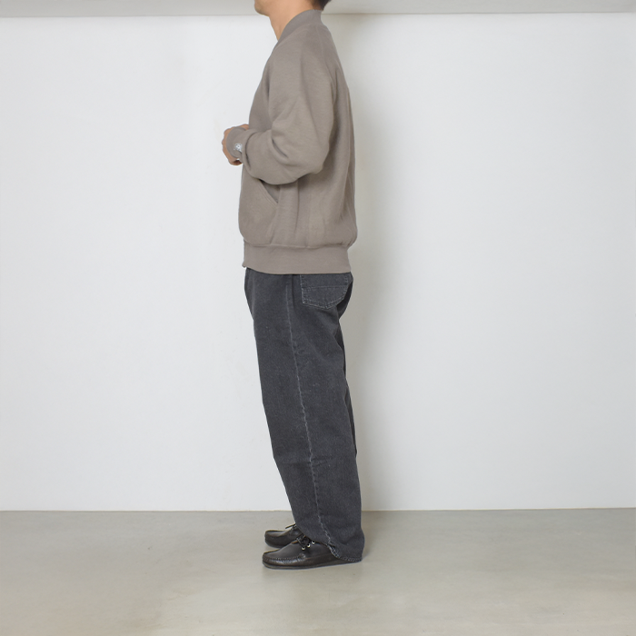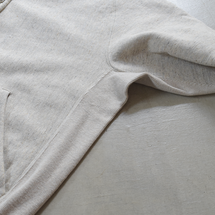 生地は他のスウェットと同様、空紡糸をミックスさせ、表面の肌触りをややドライに設定しております。
