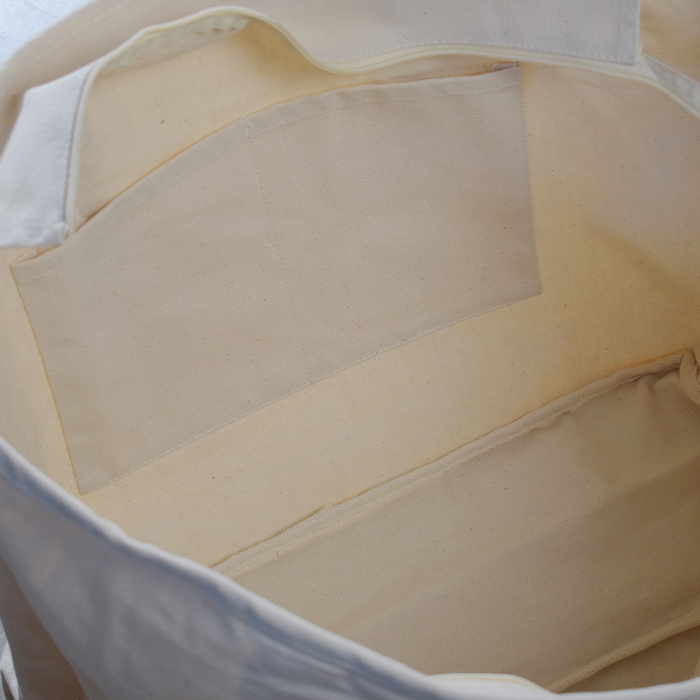 形はマチのあるスクエア型で、TOPはジップ付き。