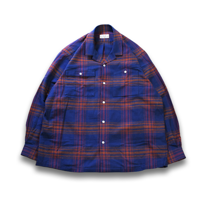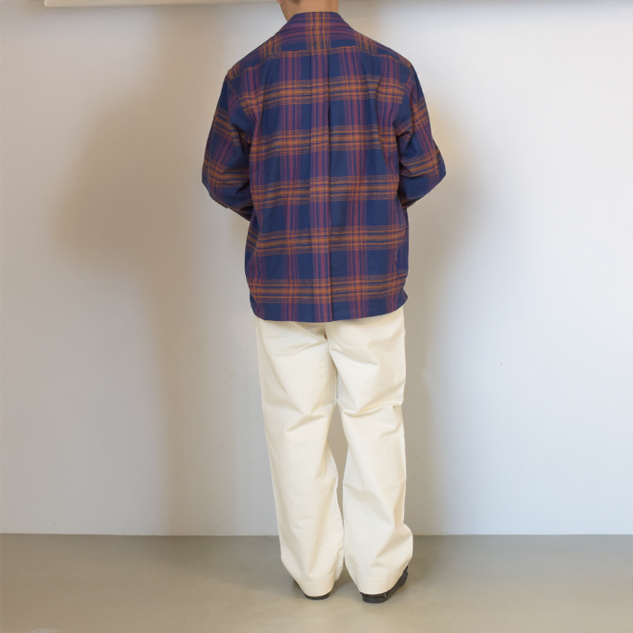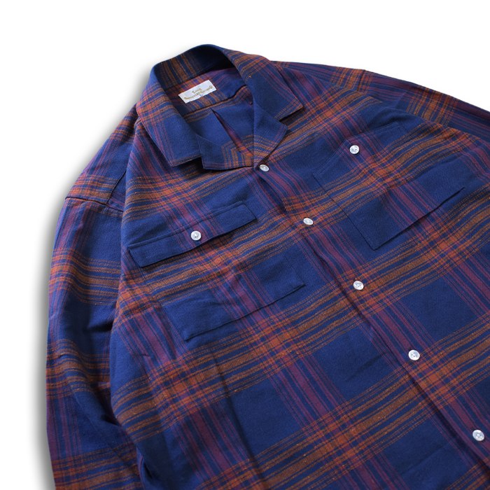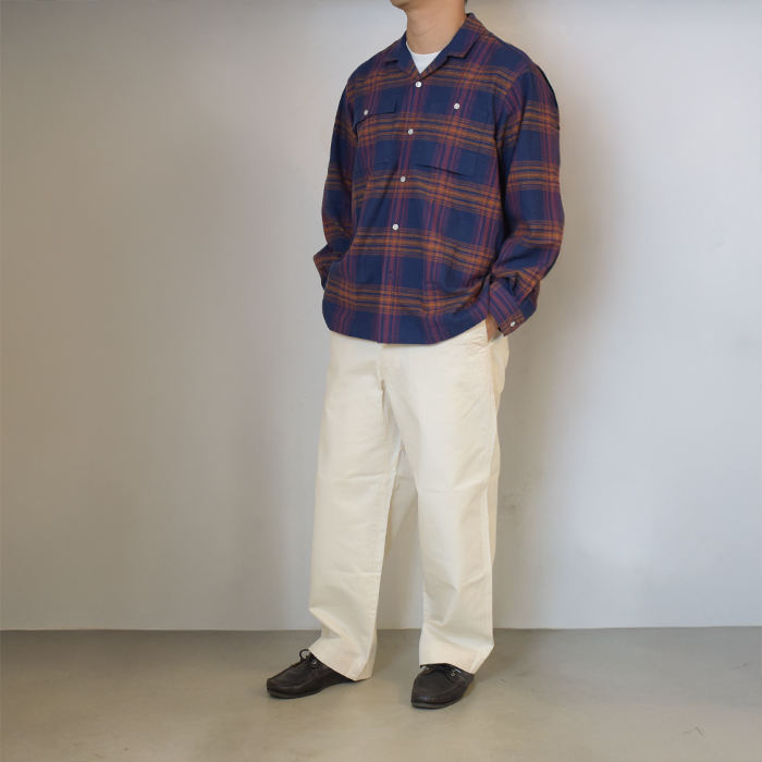 洗ってガサっとした感じが似合いそうなネルシャツです。