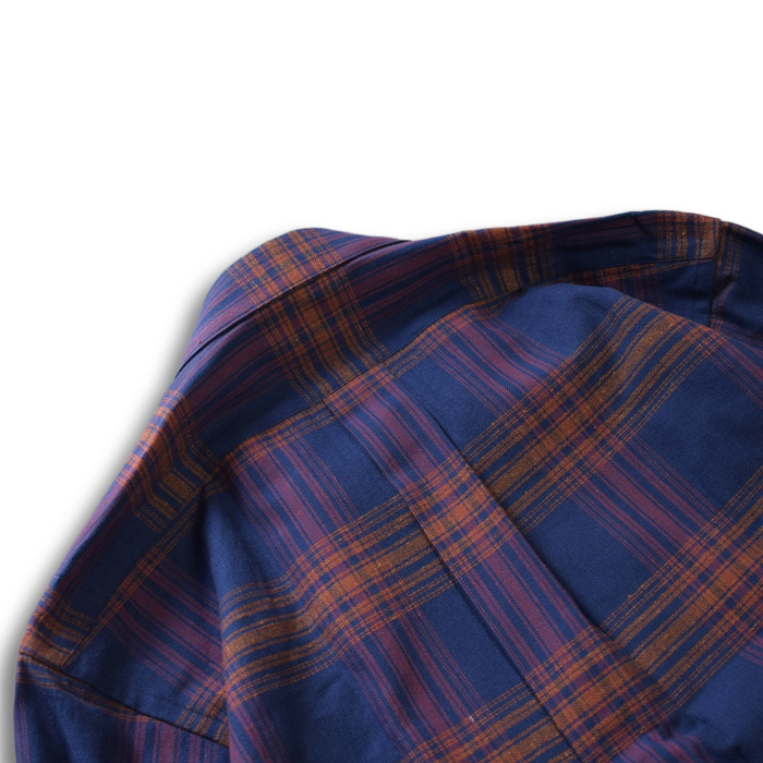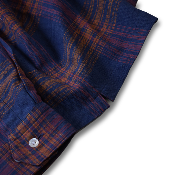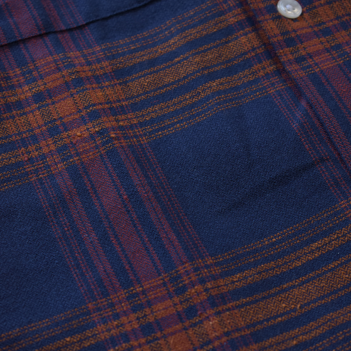 少し明るめのネイビーベースにオレンジのチェック柄。