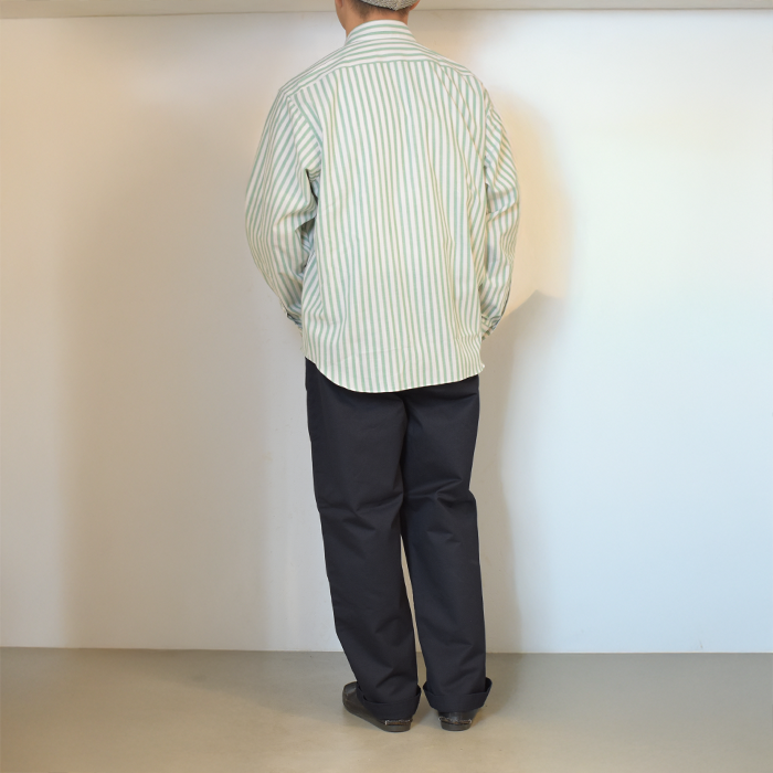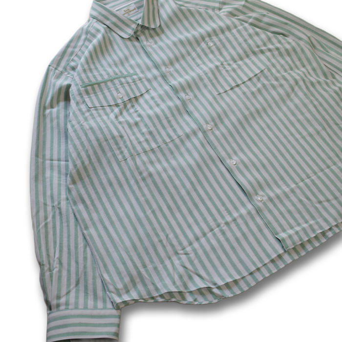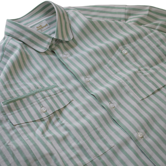 カフスも襟に合わせてラウンドしており、全体的に優しい見た目のシャツに仕上げております。
