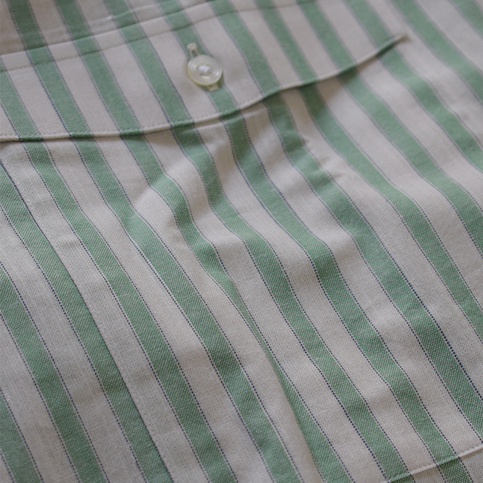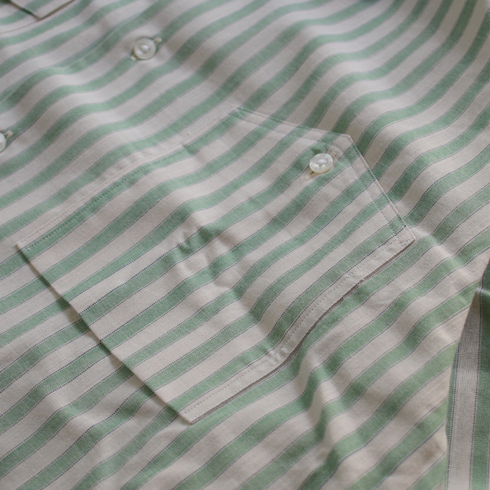 若草色のストライプにネイビーのドットラインがアクセントになっております。