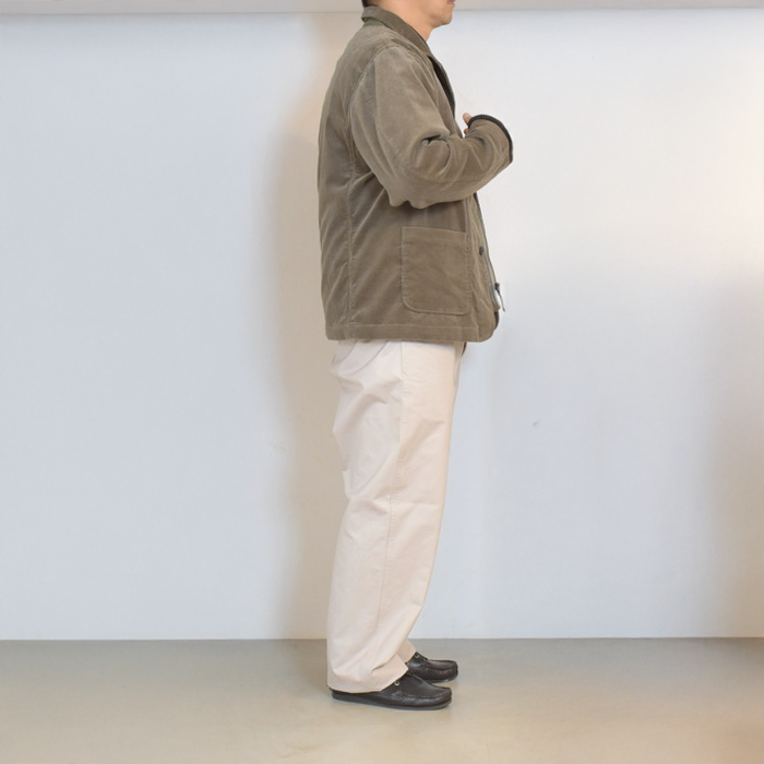 ウォッシュ加工を施したテロっと柔らかいコード生地は肩が凝らず、楽に着ることができます。