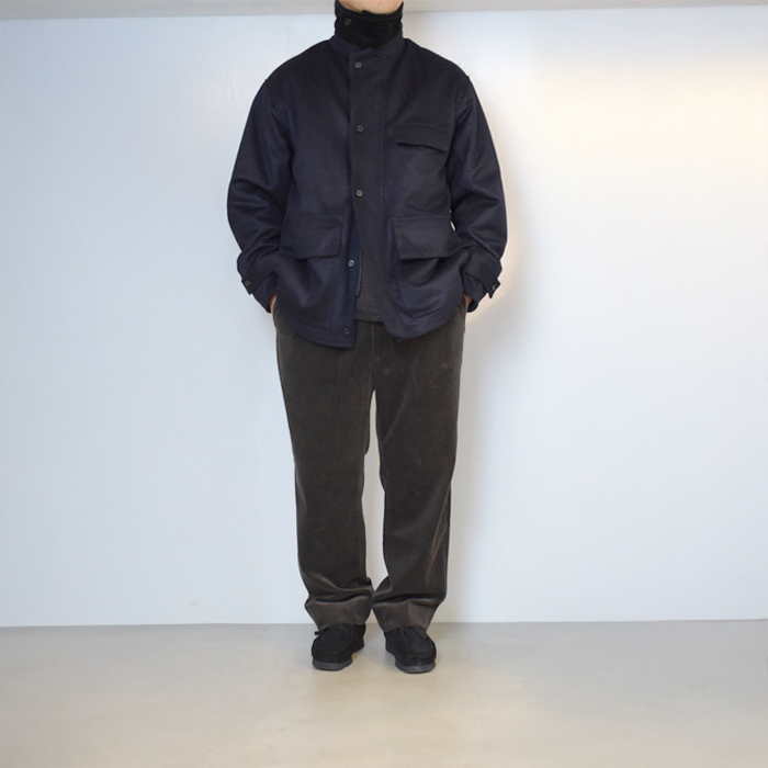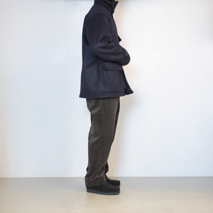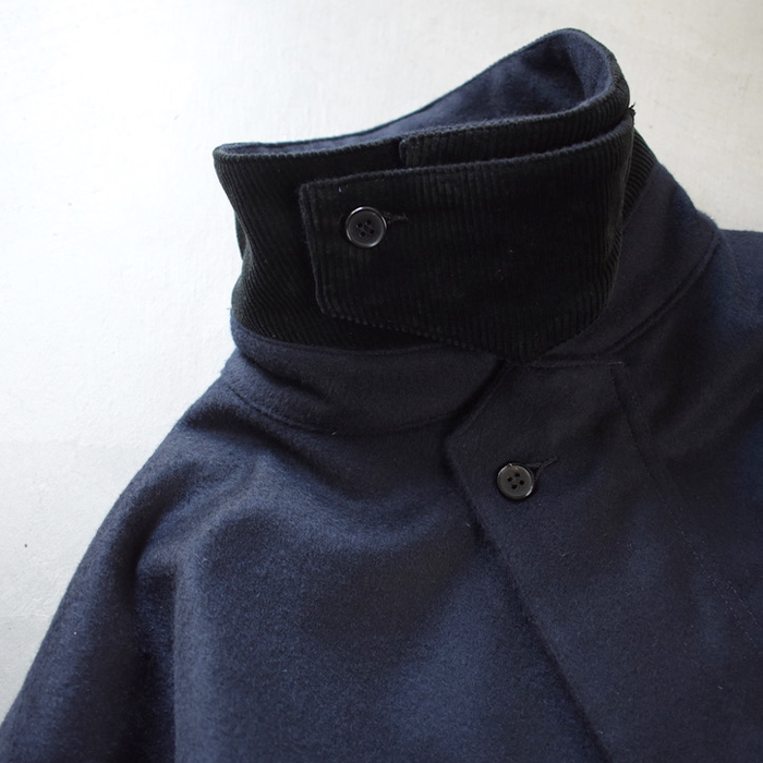 大きめの襟は裏地にコーデュロイ生地を当てており、スタンドカラーにした時にアクセントとなります。