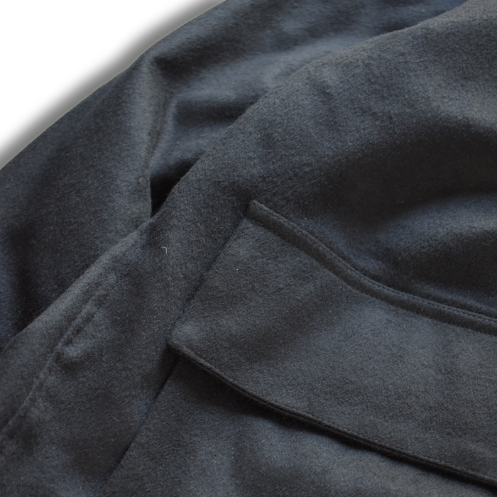 やや毛足の長い光沢感のある上質なメルトンウール生地です。