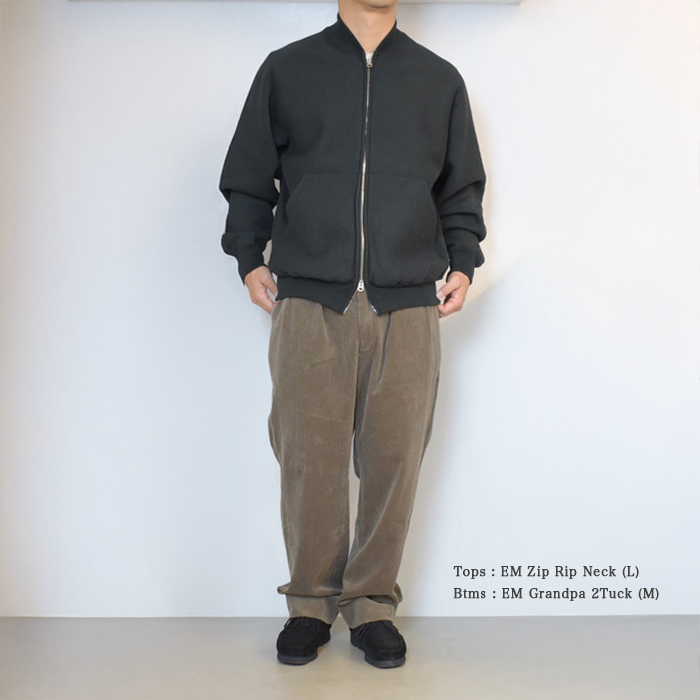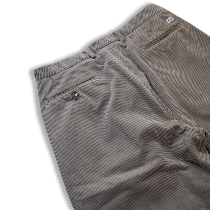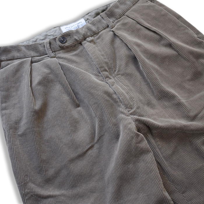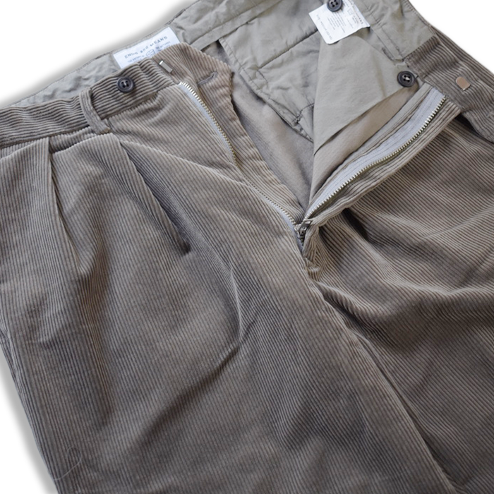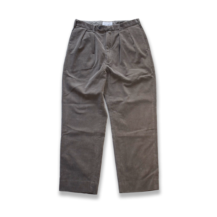 【ENDS and MEANS】Grandpa 2 Tuck Cord Trousers - Grey Khaki -