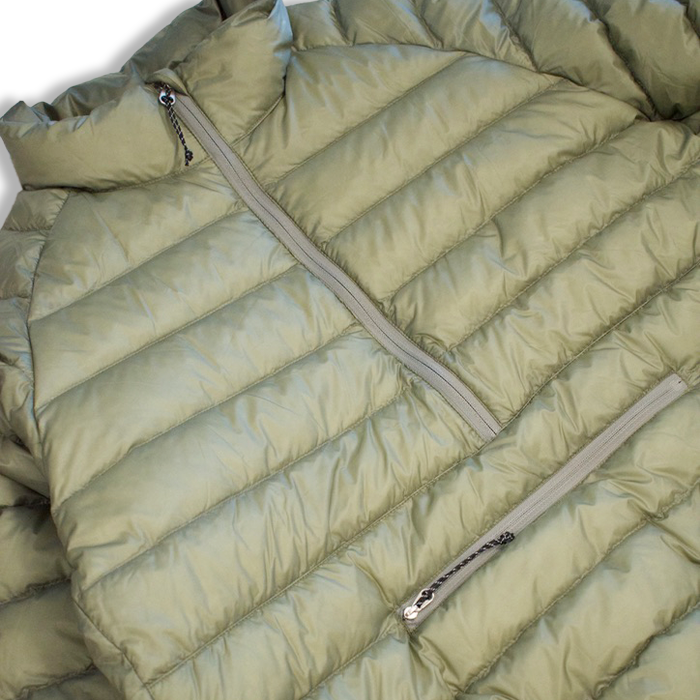 中綿のダウンやフェザーも直接入れ込み、コンパクトに収まるように考えられた仕様。