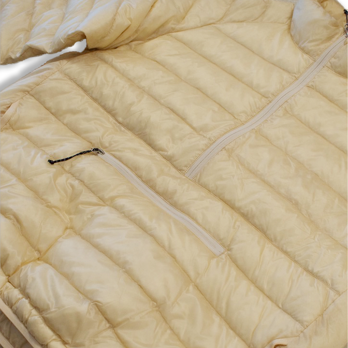 中綿のダウンやフェザーも直接入れ込み、コンパクトに収まるように考えられた仕様。